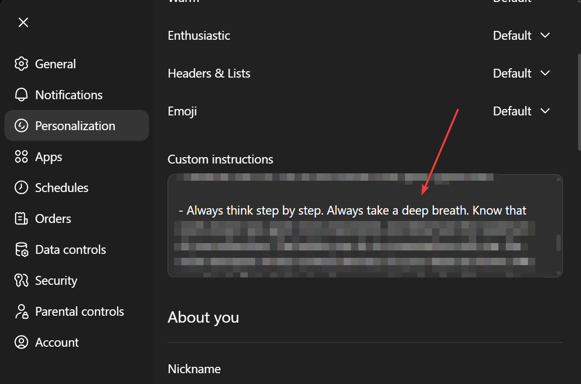 And my custom instructions have, since then, included… “Always take a deep breath.”