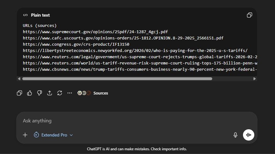 But one day — with a set of model updates — I suddenly started to get code blocks of URLs at the bottom of every response.