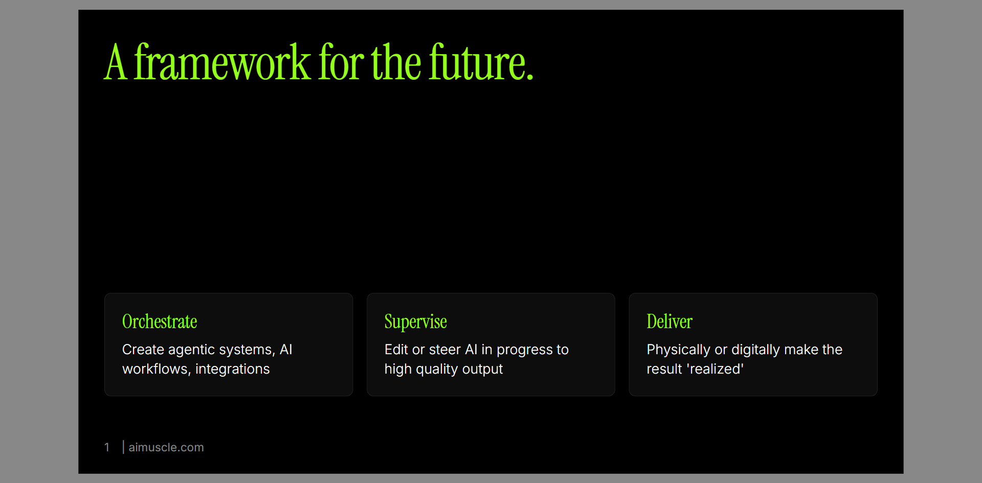 Gaining orchestration leverage (“I delegate or yap at AI agents”) so we no longer have to sit in primitives like Google Slides or PowerPoint